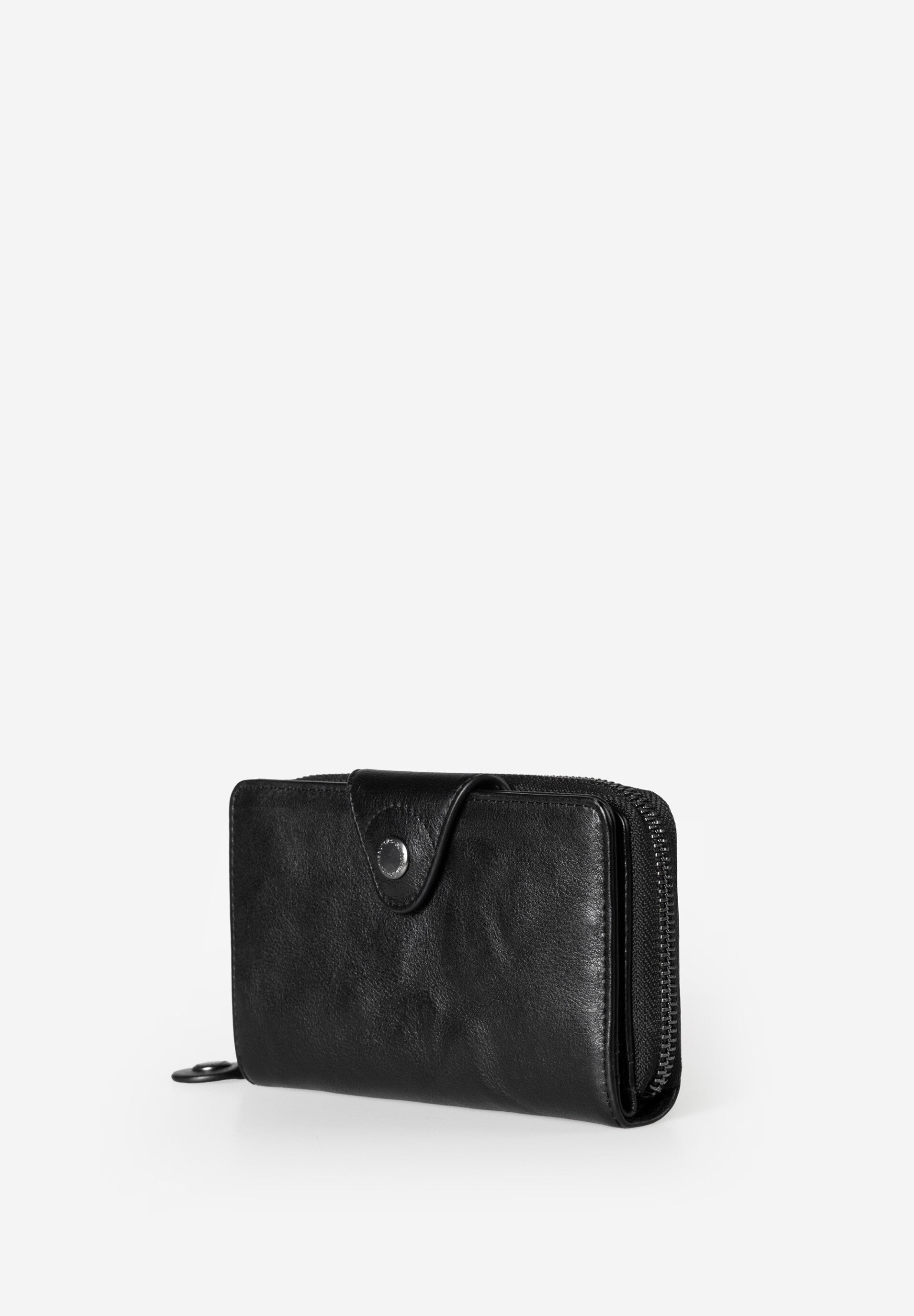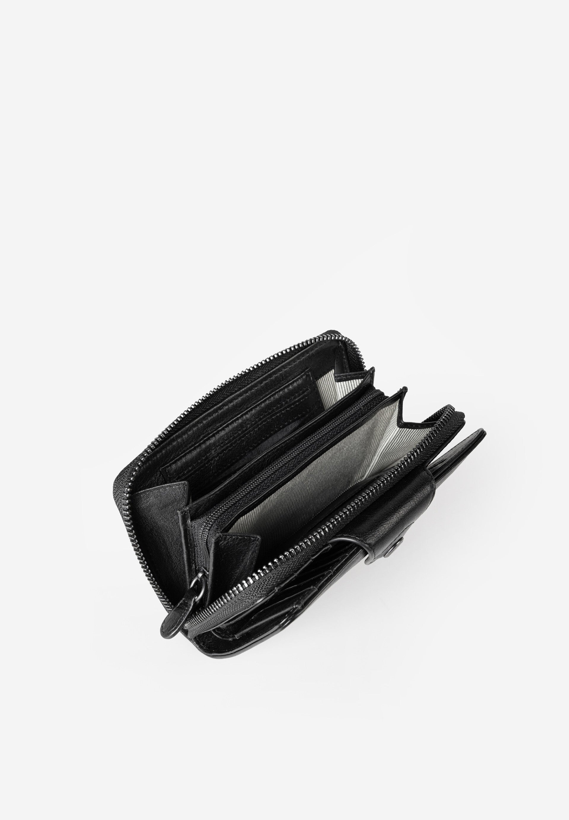 Indeling binnenin: 10 kaartsleuven waarvan 1 doorzichtig vak, 4 zijsleuven - vak voor biljetten - ritsvak met binnenin plaats voor 4 kaarten